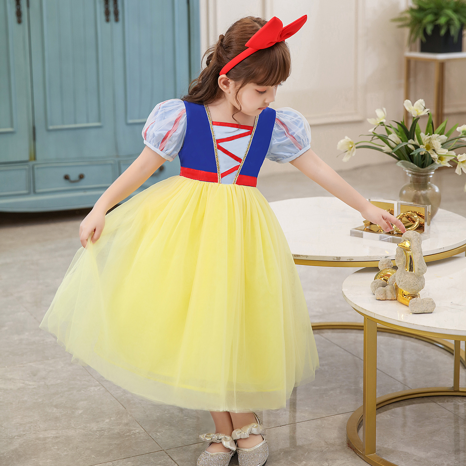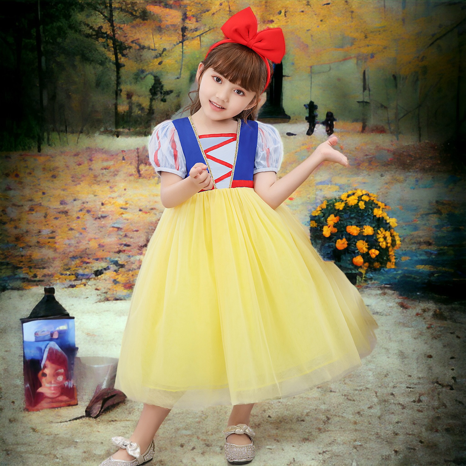 Đầm công chúa bạch tuyết cho bé 3-8 tuổi kèm băng đô đỏ
