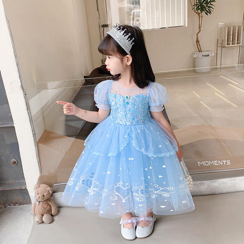 Váy đầm công chúa elsa bé gái 2-9 tuổi màu xanh tay phồng siêu xinh
