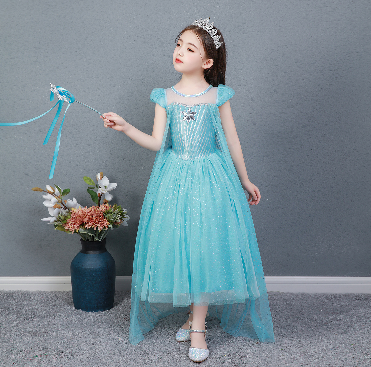 Đầm váy công chúa Elsa cho bé gái màu xanh ngọc – kèm tà